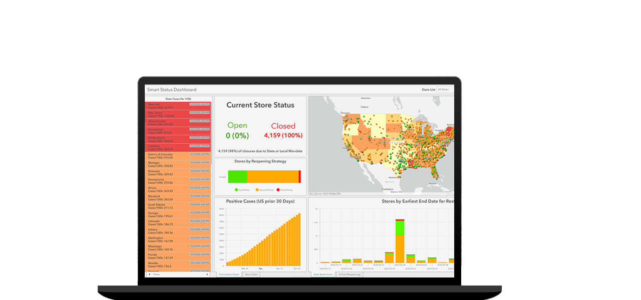 Every business has been disrupted by the COVID-19 pandemic. Some businesses are scrambling to provide high-demand items to frustrated customers, allocating resources where they are most needed. Many businesses are working through local restrictions on operations that are impacting their ability to deliver products and services to customers. Geographic sales dashboards and spatial analytics can provide executives with key insight about where business is occurring today and where they should plan for it to occur tomorrow as restrictions are lifted and facilities re-open.